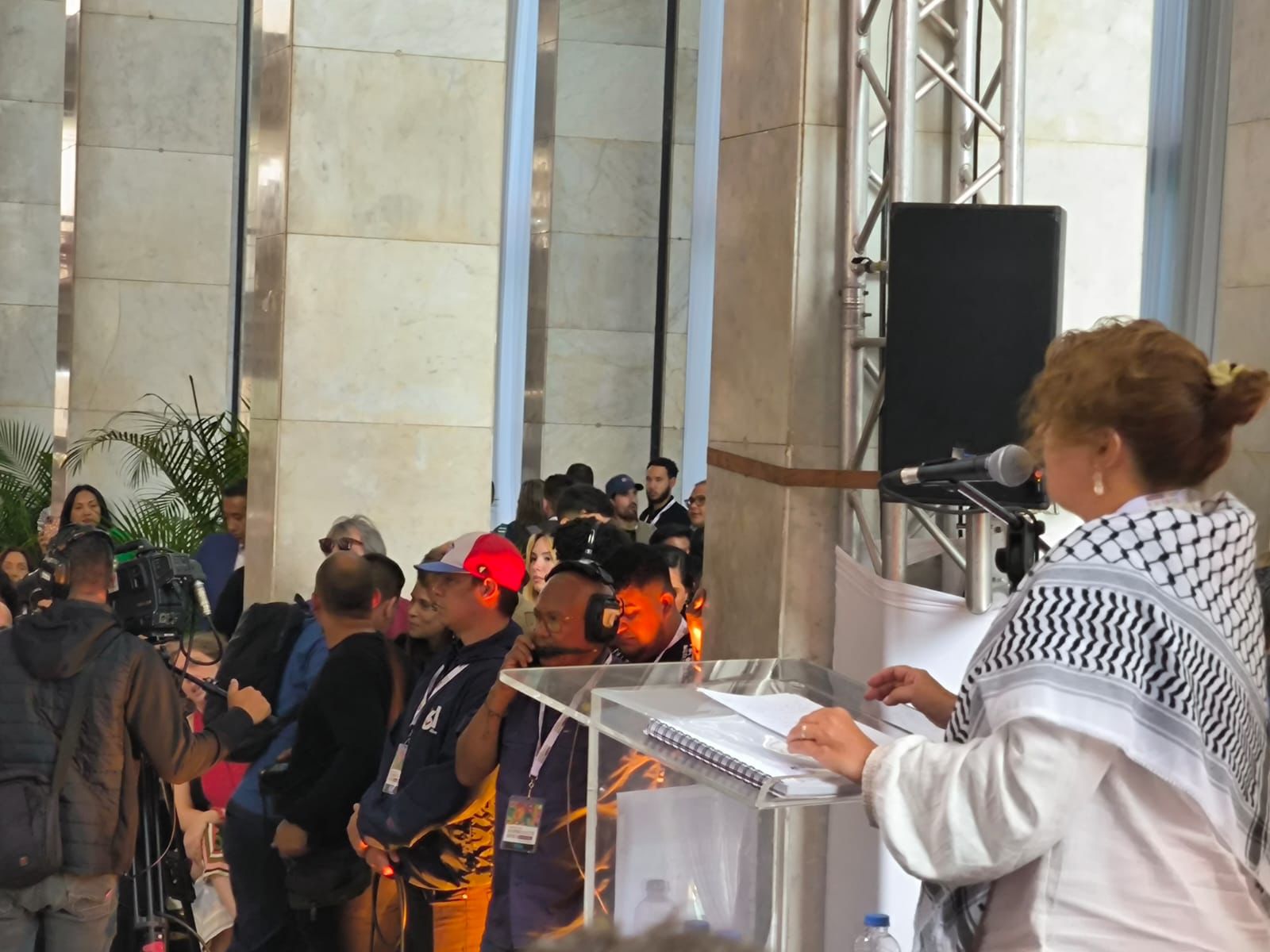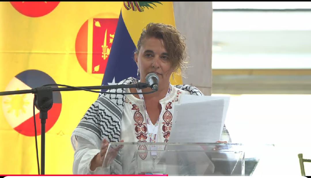 La Dra. Andrea Vlahusic, Secretaria General de la Asociación Americana de Jurustas – Rama Argentina, participó del acto de apertura de la Asamblea de los Pueblos por la soberan{ia y la paz de nuestra América, en Caracas-Venezuela, 9/12/25.