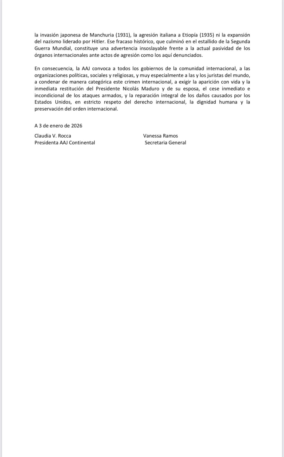 Declaración de la Asociación Americana de Juristas (AAJ) repudiando la ilegal agresión contra la República Bolivariana de Venezuela por el gobierno de los EE.UU. – Enero 2026