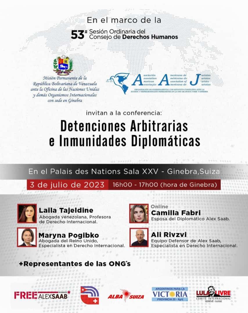 El dia 3 de julio en el contexto de la 53° sesión ordinaria del Consejo de Derechos Humanos se celebró la conferencia Detenciones Arbitrarias e Inmunidades Diplomáticas en la sede de ONU-Ginebra.