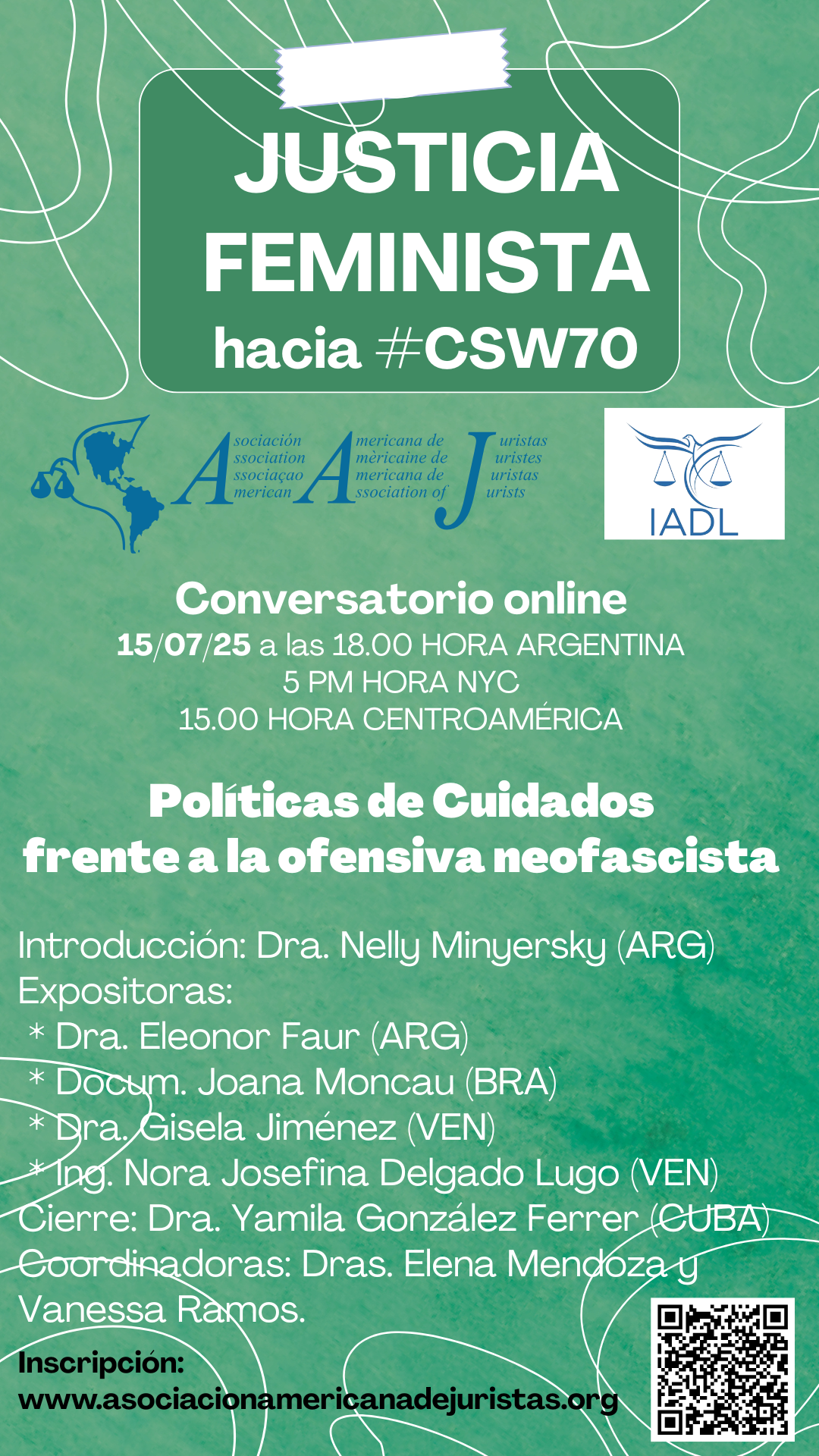 Topic: Justicia feminista Hacia #CSW70 – Políticas de cuidados frente a la ofensiva neofascista