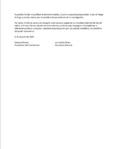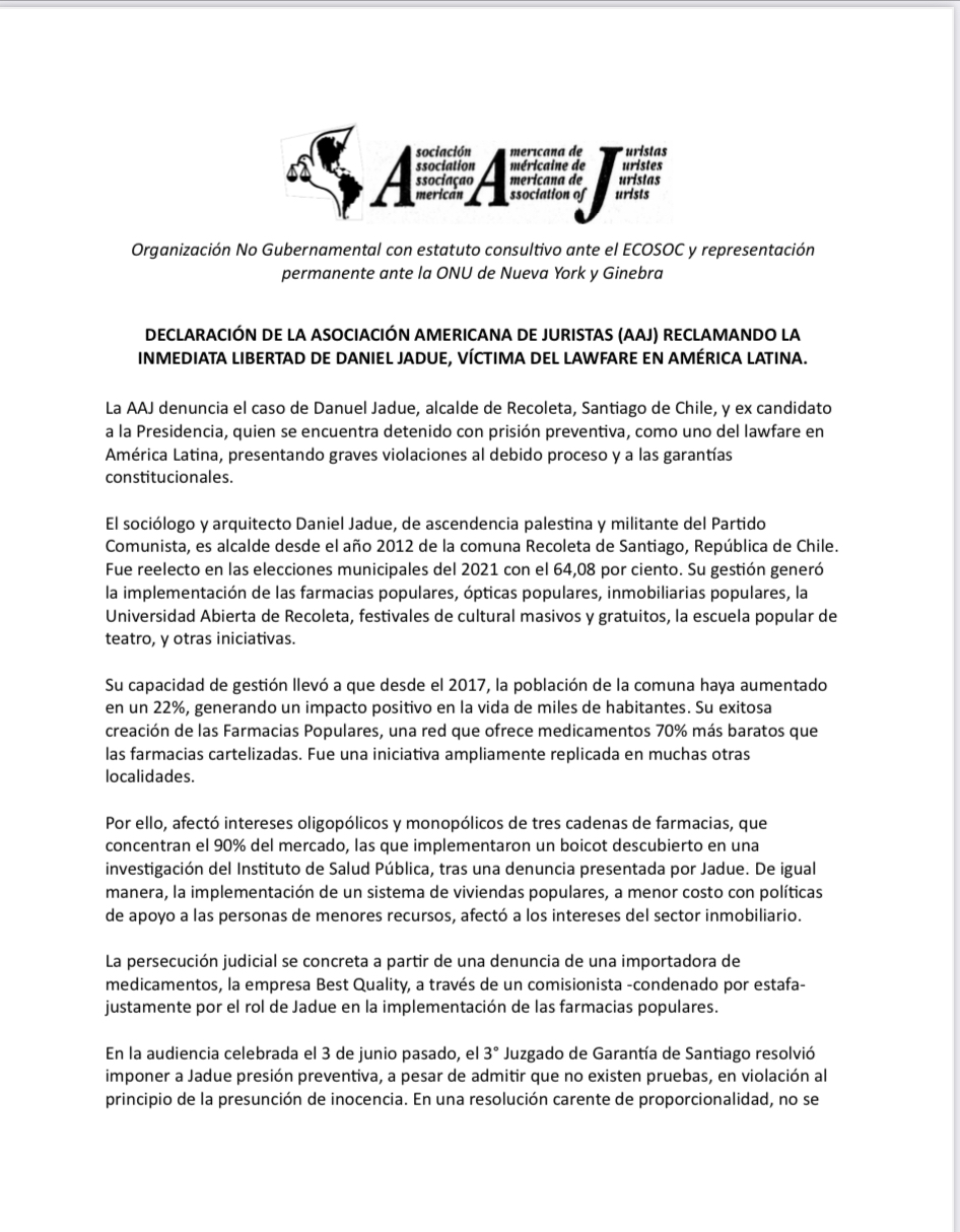 Portada » Reclamo de la AAJ ante otra victima del Lawfare en America LatinaReclamo de la AAJ ante otra victima del Lawfare en America Latinapor Asociacion Americana de Juristas11 de julio de 202428 de agosto de 2024